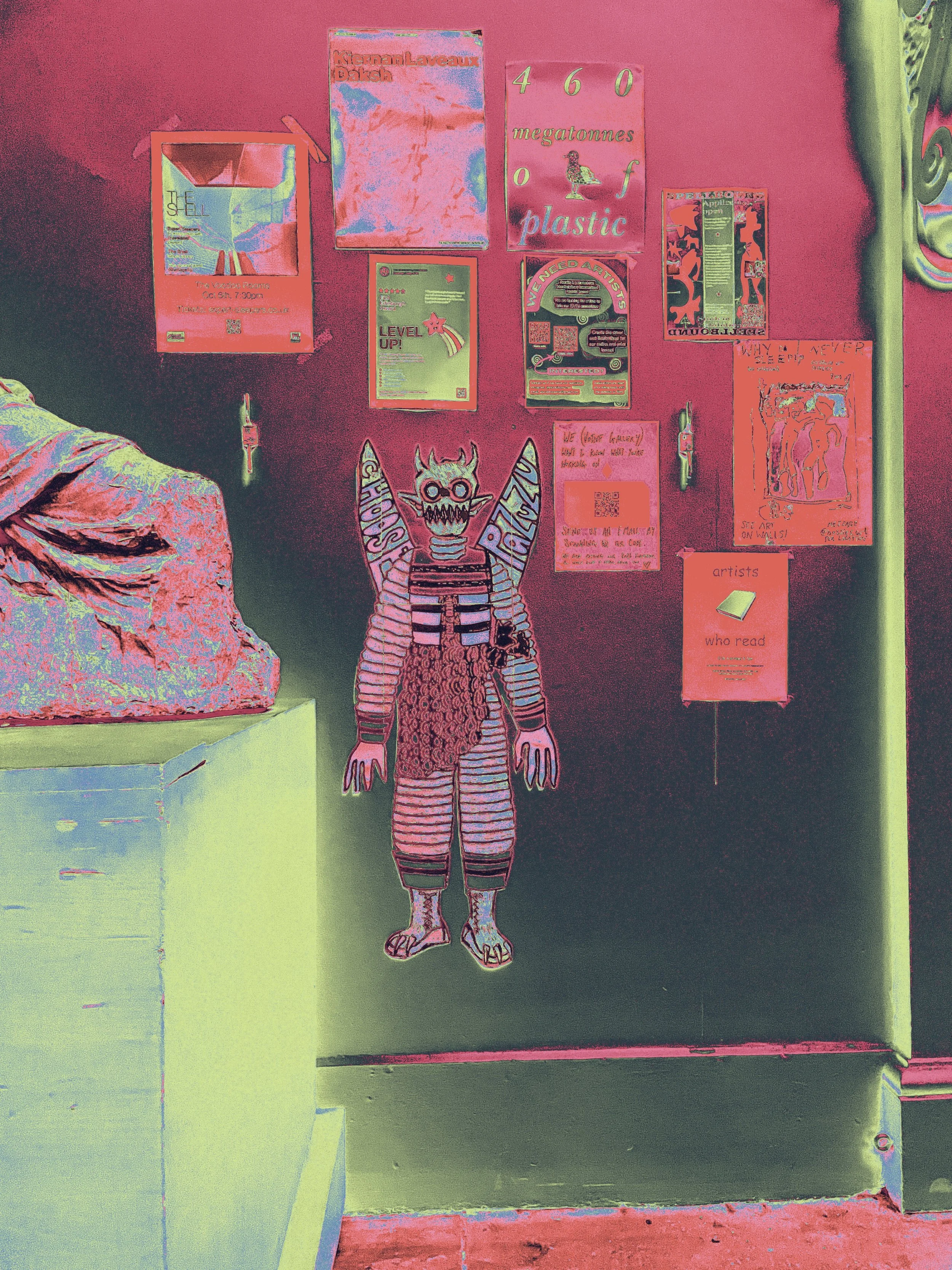 My project is based around the animated band Gorillaz, originally created by Damon Albarn and Jamie Hewlett. I was inspired to design this project by the exhibition House of Kong, which took place in London over the summer of 2025 and celebrated the band’s 25th anniversary. For my concept, I have imagined an interactive experience where the audience is guided through a building, in which each room displays a key moment from an album’s creation. I have chosen the album Plastic Beach, which was released in 2010 and demonstrates themes of pollution, consumerism, and artificiality. My designs feature futuristic and dystopian elements as recognisable features of the band’s iconic style. To limit my colour palette, I chose to use colours taken from the miniature set which was created for use in the music videos for Plastic Beach. The island is a key feature within this album, as it is a visual representation of the albums key theme of pollution, being made entirely out of landfill.